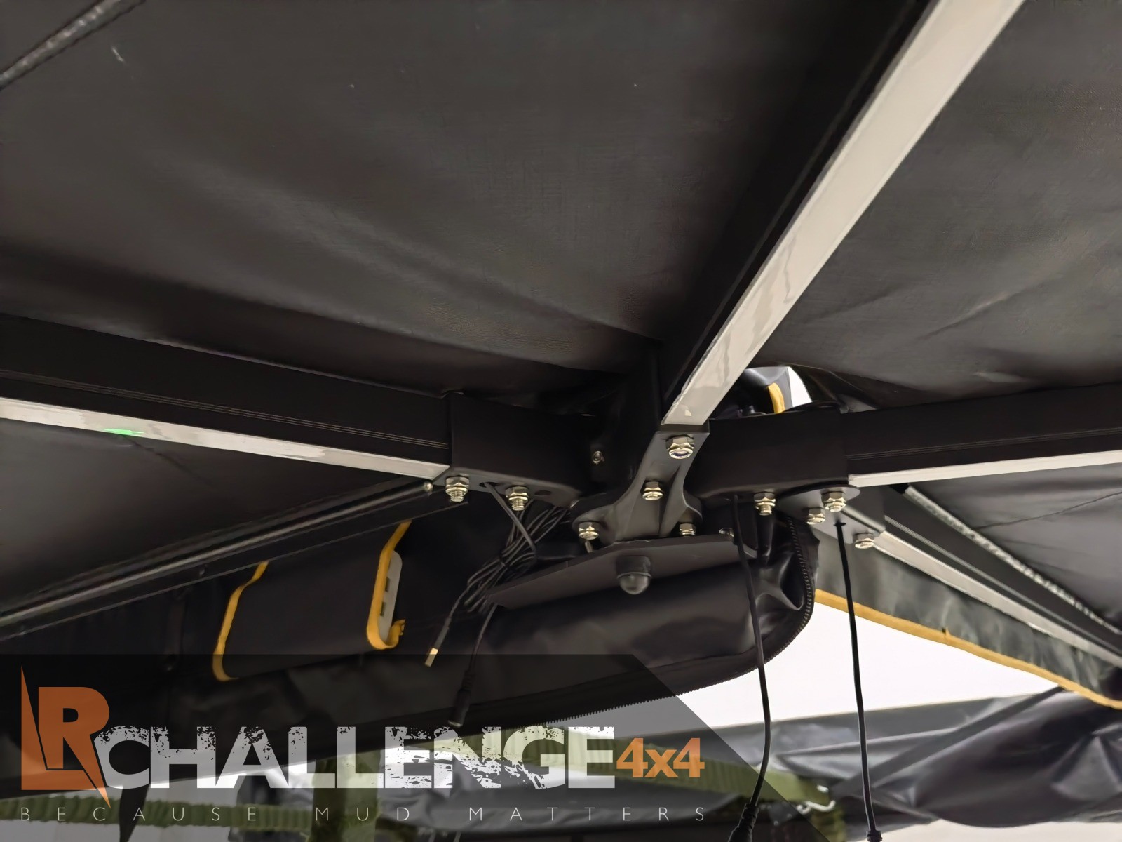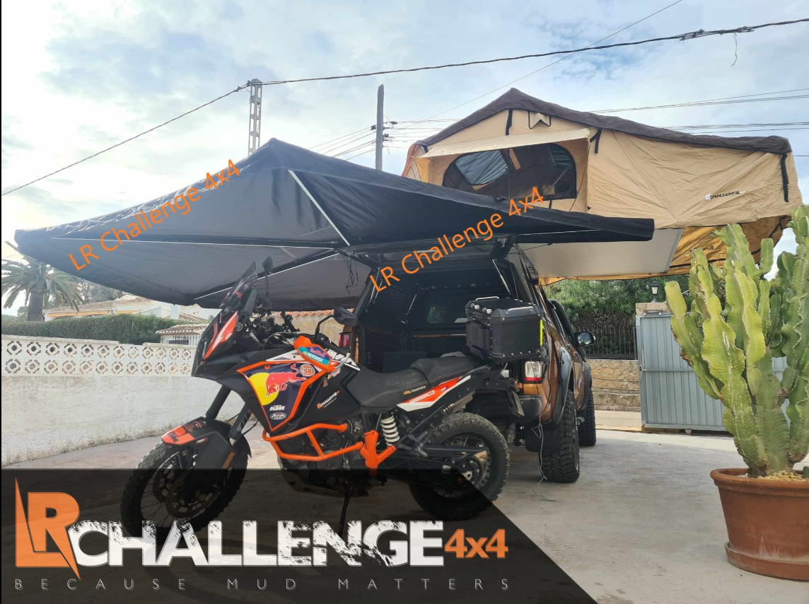 LR Challenge 4×4 are proud to offer our 360 degree pull out awning inc LED lighting 4×4 camping transporter waterproof, 2.5m extension in 360 degrees of the car.